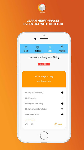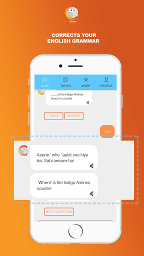 Chittoo è un'app gratuita di apprendimento inglese.Chiacchierando con Chittoo, imparerai la grammatica corretta, la formazione di frase, il vocabolario e le frasi da utilizzare nella tua vita quotidiana.Chittoo correggerà il tuo inglese ogni volta che commetti qualsiasi errore.Parla inglese con fiducia.Impara la grammatica corretta.Pratica inglese parlando per colloquio di lavoro, intervista SSB, colloquio Visa, incontri, chat quotidiana, chat di amicizia, cabina Chat chat.Impara l'inglese e cancella i dubbi.Chittoo fa imparare l'inglese molto facile fornendo lezioni di chiacchiere facili.