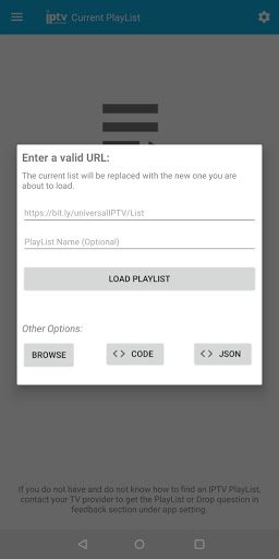 Universal IPTV is a video player application for .m3u and .m3u8 files, and also plays IPTV links. Watch IPTV from your Internet service provider or free live TV channels from any other source on the web.