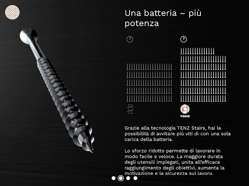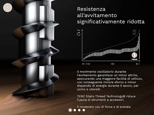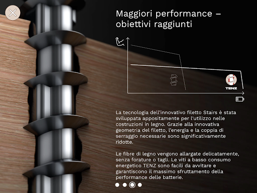 Il movimento oscillatorio in fase d’avvitamento riduce l’attrito al minimo. Con l'aiuto dei tasti nell'applicazione AR è possibile interagire con i modelli 3D delle viti e vedere la fase di avvitamento.