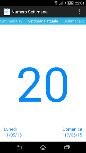 Questa applicazione ti permette di vedere quale settimana è, in quale data inizia e in quale data finisce. Puoi passare tra le settimane a venire o passate o trovare la settimana di una specifica data. Questa applicazione può anche creare eventi nel calendario per la settimana che stai vedendo.