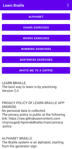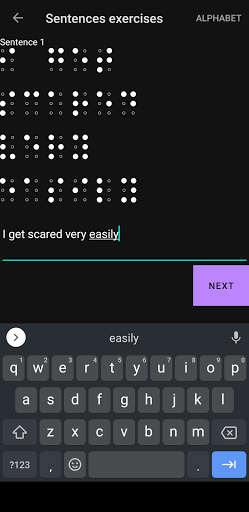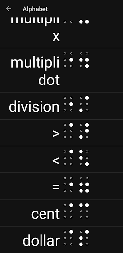The application contains the braille alphabet.