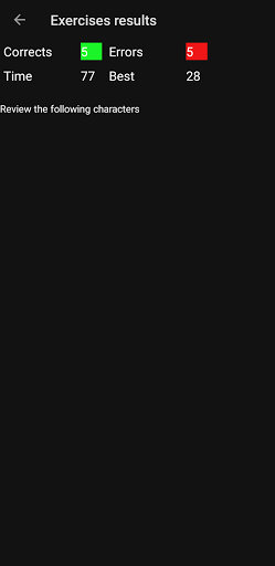 At the end of the exercise, the correct, failed, time spent will be displayed