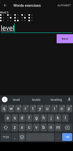Allows you to do exercises with letters, numbers, words and phrases.