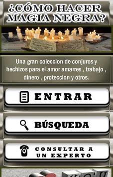 ¿Cómo Hacer Magia Negra? Este tipo de magia, tan poco aceptada en la sociedad, se utiliza principalmente en casos de amarres, siendo estos utilizados para amarrar a alguien, un amor del pasado, alguien que no nos corresponde, o bien alguien que no sabe de nuestra existencia pero queremos atraer a nosotros. En esta aplicación encontrara una gran colección de conjuros y hechizos para el amor amarres , trabajo , dinero , protección y otros.