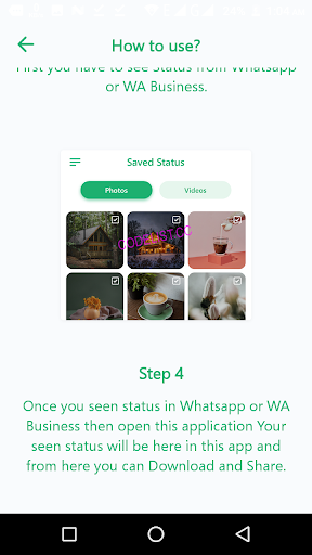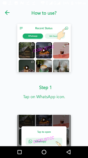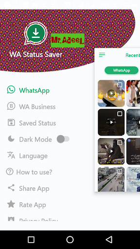 Questa app Status Saver è davvero facile da scaricare qualsiasi immagine di wattsaap & wa business e stato video con risoluzione originale.L'app ha un'interfaccia utente moderna e animata con molte caratteristiche fantastiche.