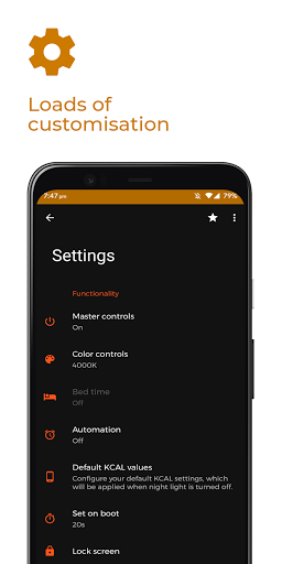 La luce notturna fornisce un colore semplice e avanzato Controlli per l'utente. Per coloro che desiderano un semplice controllo, il controllo della temperatura del colore è per loro, mentre per gli utenti avanzati, l'app consente il controllo RGB a schermo intero.