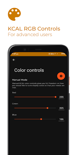 Kcal è una funzione di sintonizzazione del driver display per dispositivi Qualcomm, scritti da Savoca. Questo è usato dalla luce notturna per regolare la luce blu maneggando la schermata RGB. Poiché le modifiche vengono eseguite nel livello del conducente, questo è il filtro luminoso blu più efficiente, con le modifiche visibili su tutto lo schermo in qualsiasi momento.
