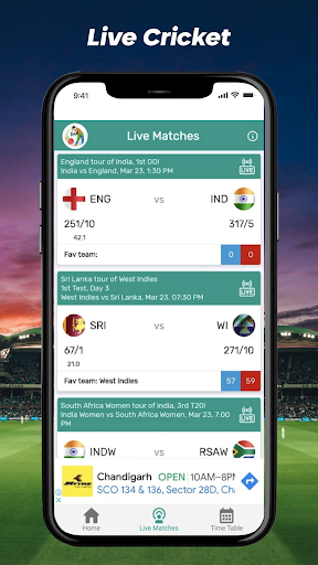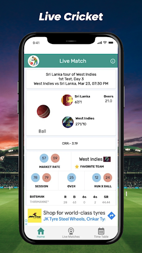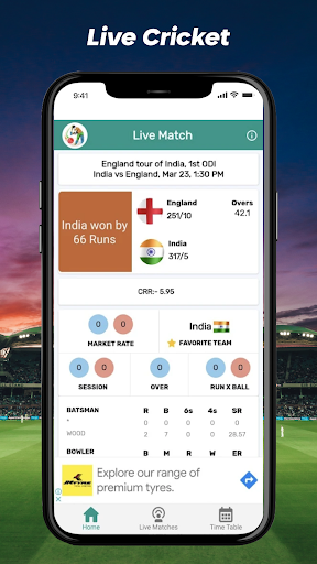The Cricket Exchange - Live Score app is for all enthusiastic cricket lovers. This Cricket Exchange - Live Score is used to provide you with Live Cricket Match Updates, and Analysis of every Cricket match in a very unique & interesting way in which users can enjoy Live ball by ball audio commentary from the exports, real-time win percentage of every match, detailed scorecard with a full description, partnership stats, insightful pre-match analysis by exports including pitch report, prediction of 1st inning and 2nd inning, player's weakness, dimensions of the ground, and many more.