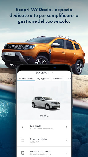 Non aspettare , scarica l'app e aggiungi il tuo veicolo al garage virtuale per accedere ai servizi MY Dacia.