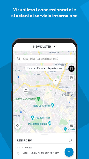 // Utilizza la navigazione di bordo per trovare i punti di interesse vicini a te (distributori di benzina, concessionari, garage ecc.)