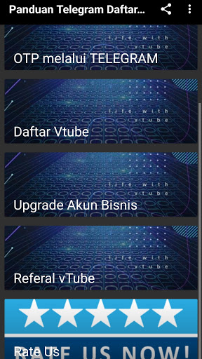 Didalam aplikasi panduan / tutorial step by step ini, akan menjelaskan mengenai cara mendaftar akun vTube dengan menggunakan bantuan aplikasi telegram, hingga menjadi akun bisnis yang dapat mengahsilkan Rupiah dan memiliki kode refferensi untuk dibagikan kepada orang lain yang juga berminat join akun vTube.