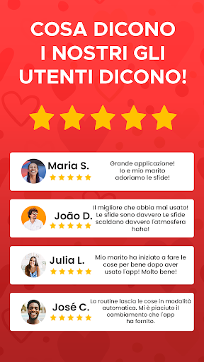 L'app Sfide Calde è progettata per coppie e amanti che vogliono rompere la routine e ravvivare la loro relazione. È l'unico ad avere avatar e più di 1500 sfide, di cui 800 disponibili nella versione gratuita, inclusi i dati erotici disegnati per ogni partecipante.
