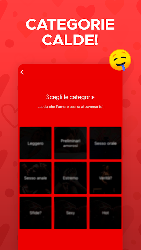 - Appariranno le categorie e potrai selezionarne più di una, quindi fai semplicemente clic su Avanti! Quindi tu e il tuo partner avete ogni settimana diversi suggerimenti per nuove sfide erotiche.