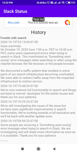 live slack status checker and view status history