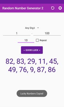 For example, you want to generate any number from 1000 to 9999, then you just select 4 digits and press Good Luck. Simple and fast.