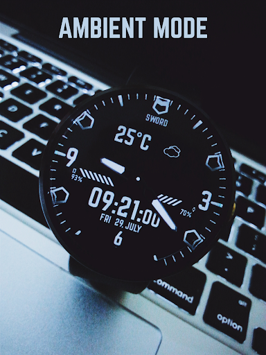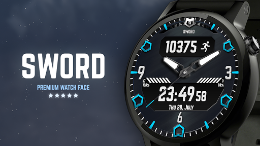 Sword è un orologio da orologio moderno e interattivo per dispositivi di usura Android con animazione fluida.