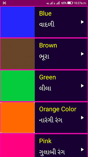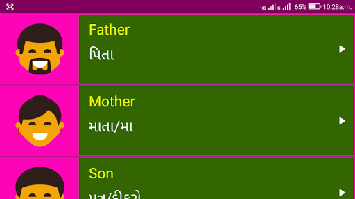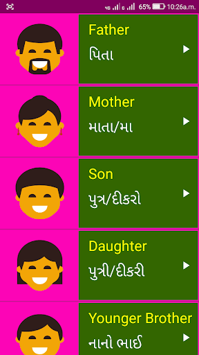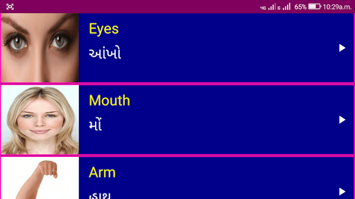 1. Each English word has clear image and audio pronunciation to make Learning English from Gujarati Easy. Every English word has Gujarati meaning.