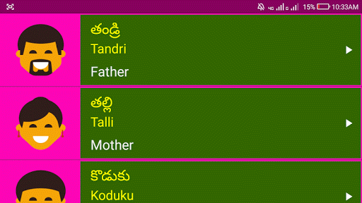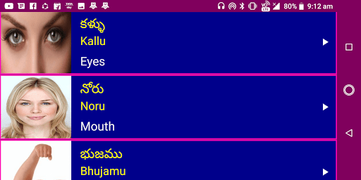 1. Each Telugu word has clear image and audio pronunciation to make Learning Telugu from English Easy. Every Telugu word has English meaning.