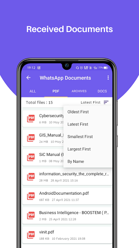 Δ aiuta a visualizzare i documenti ricevuti in varie sezioni come PDF, archivi, documenti e tutti i documenti.