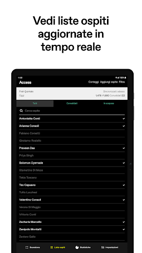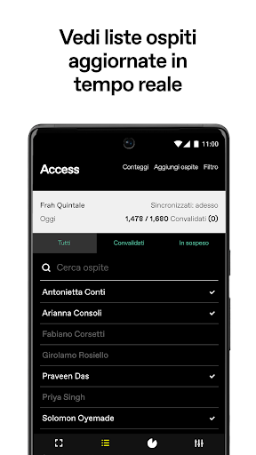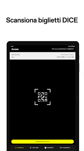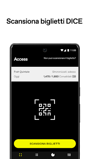 DICE Access permette agli organizzatori di gestire facilmente i loro eventi. Scansiona i biglietti dei fan e aggiorna la lista ospiti istantaneamente. Ha anche la modalità backup per la convalida manuale se non hai accesso a internet e lavora con quasi ogni tipo di illuminazione.