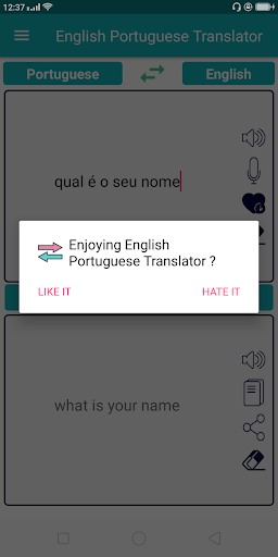 - Share any translated word and sentence to your friends and family via social media(English to Portuguese