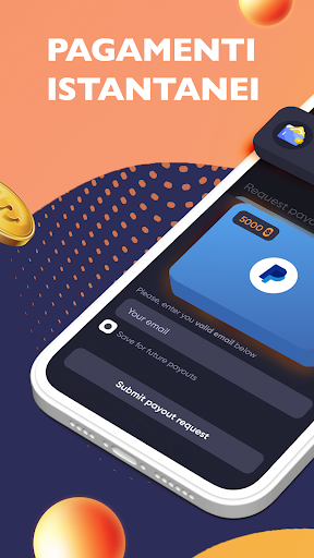 Siamo una delle piattaforme mobili con i pagamenti più elevati sul mercato e abbiamo una varietà di opzioni di pagamento, tra cui PayPal, carte regalo e altro ancora. Con la nostra funzione di pagamento immediato, puoi essere pagato rapidamente e iniziare a goderti i tuoi guadagni subito.
