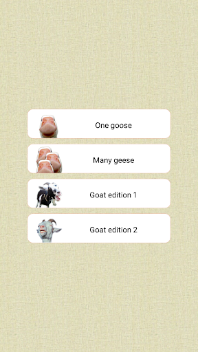 Mix sounds of rubber geese and screaming goats from well-known popular and viral video-memes. Have a lot of fun, cheer your friends and everybody around. Just try it once and you will never stop because sounds are going with ridiculous animations. Endless fun! Try and you will not regret!