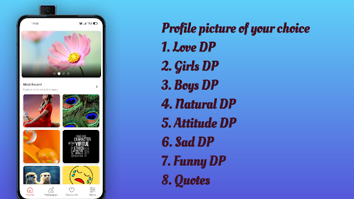 Along with DP for WhatsApp and other social sites, high quality and HD wallpapers are also provided which is an additional feature of this app.