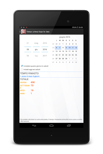 Il programma esegue manipolazioni matematiche con le date. Adatta per calcolare il numero di giorni trascorsi dal paziente in ospedale, nonché per i calcoli simili (letto occupazione in alberghi e così via). Può essere molto utile per i calcoli rapidi in assenza della vista del calendario. Utilizzando il programma si può scoprire quanti giorni si vive nel mondo, quanto è rimasto fino a date importanti e più
