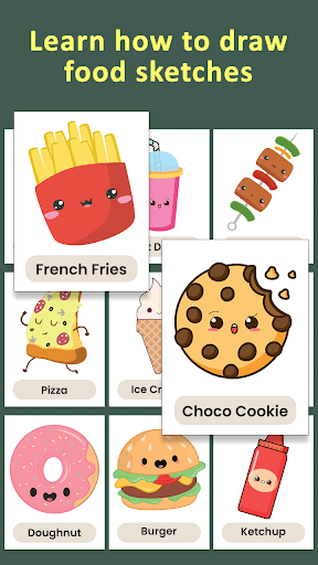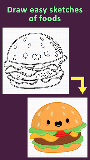 How to Draw Foods app, has drawing tutorials that step by step teaches you how to make food drawings.