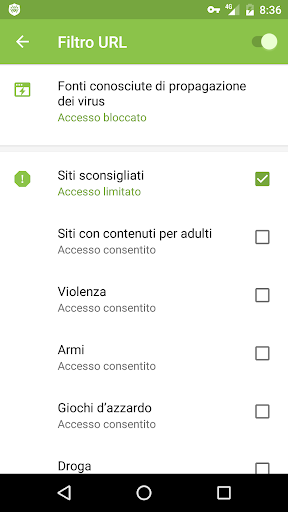 • Blocco in base alle categorie tematiche (droga, violenza ecc.).