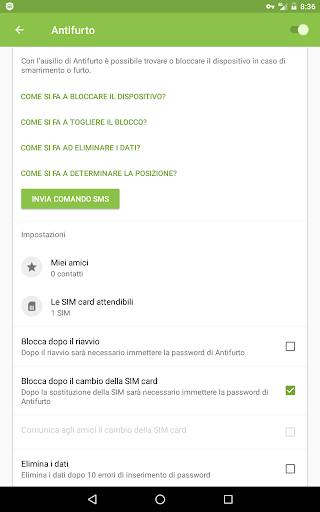 • Protezione con password delle impostazioni antivirus e dell'accesso alle app.