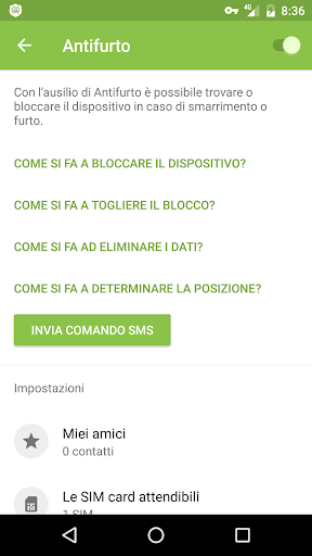 • Possibilità di trovare il dispositivo mobile in caso di smarrimento o furto e, se necessario, cancellare da esso informazioni confidenziali in remoto.