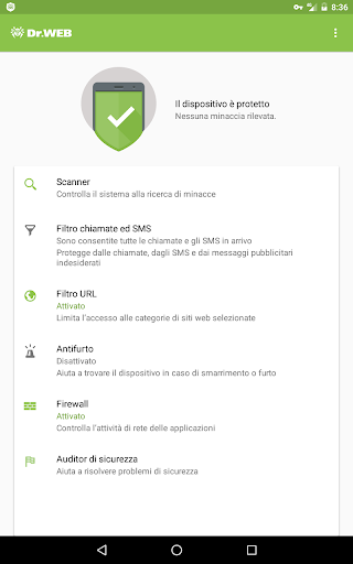 Protezione completa da tutti i tipi di minacce per dispositivi mobili con Android OS 4.4 — 11.0, nonché per TV, lettori multimediali e console videogiochi sulla piattaforma Android TV 5.0 con supporto "a vita".