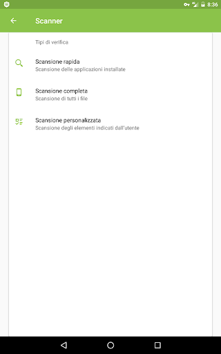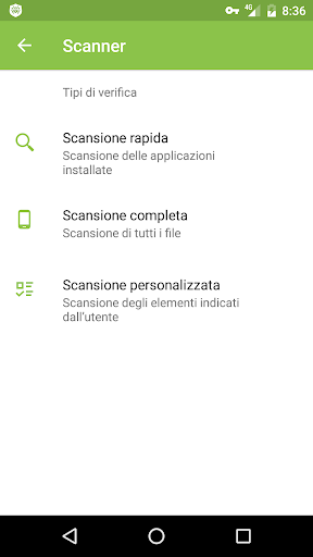 • Scansione rapida o completa del file system; scansione su richiesta di singoli file e cartelle.