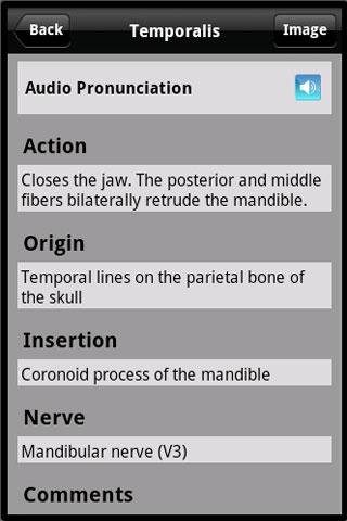 - Audio: Guida alla pronuncia per ogni muscolo.