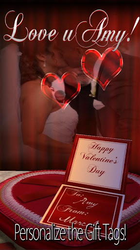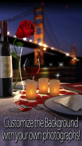 Personalizza ogni parte della scena, inclusa la tua fotografia nella cornice o in background, il tuo messaggio personalizzato per il titolo e il testo personalizzato per il regalo carta. Cuori galleggianti, palloncini o bolle alla deriva attraverso lo sfondo o spegnere del tutto gli oggetti galleggianti. Scegli il locale, il colore della rosa, la tovaglia, i tovaglioli e molto altro ancora! Seleziona uno dei temi preimpostati o personalizzare gli elementi nella scena in un modo che significa più per te e la tua amata.