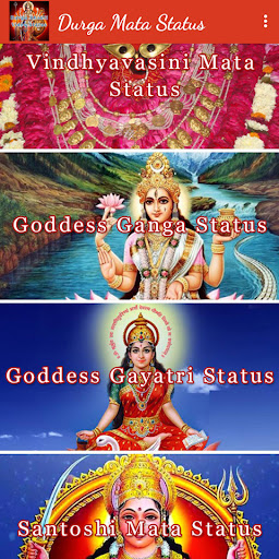 Questa app contiene Durga Mantra & Bhajan, NAV DURGA, Dea Kali, Lakshmi & Saraswati, Vindhyavasini Mata, Santoshi Mata, Gayatri Mata, Status video di Ganga Mata.