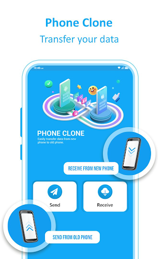 Switch phone- switch to android & transfer App;lets users easily copy data between mobiles or migrate their files to their new mobiles via phone cloner copy my dara app. With Phone Clone and Transfer App, you can move your music, contacts, videos, messages, and photos with just a few taps through copy mydata smart mobile app. Switch Data Coby My Dara; the best part about this cloning app is that it works offline without internet, cables, or Bluetooth to transfer data. Smart switch contact transfer app: clone data by connecting two phones by creating a personal hotspot for data sharing & transferring.