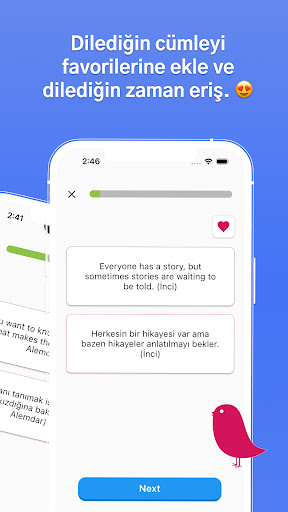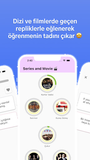 Ciao!Il modo più divertente per imparare la lingua è qui!Puoi imparare sia il turco che l'inglese.Questa è un'applicazione completamente gratuita e fa appello agli studenti di tutti i livelli.Oltre alle frasi usate di frequente nella vita quotidiana, le serie più popolari e le linee cinematografiche e i libri popolari sono qui!Puoi anche aggiungere frasi ai tuoi preferiti e navigare di nuovo.Imparare una lingua non è mai stato così divertente e facile!Scarica ora e goditi l'apprendimento delle lingue!