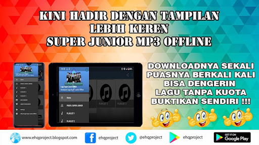 Jadi tunggu apa lagi ini dia aplikasi yang kalian cari selama ini, Buruan download Aplikasi Lagu Super Junior Offline ini.