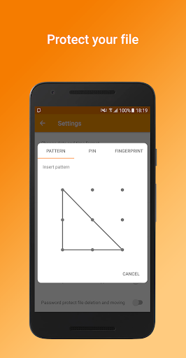 - Proteggi i tuoi file con: Pattern, Pin, Fingerprint.