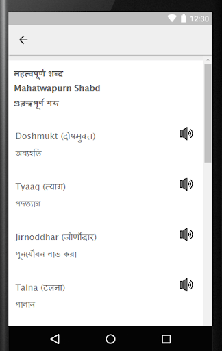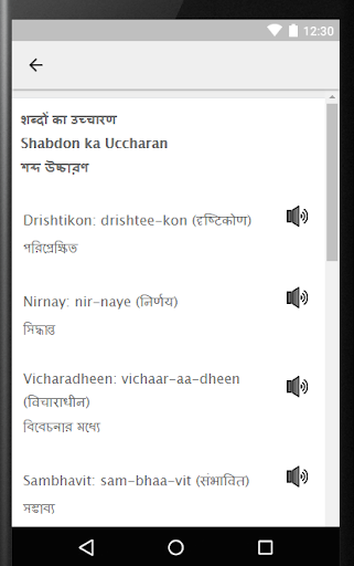 * This application uses both text and voice audio to teach Hindi the proper way.