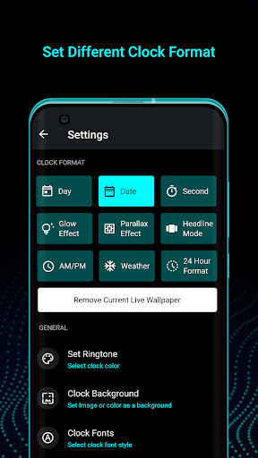 🕰You can also set 24 hour clock, glow effect, parallax effect, headline mode.