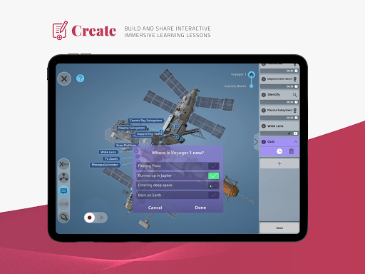- Piattaforma intuitiva e senza codici progettata per incoraggiare sia gli studenti che gli istruttori di creare contenuti per apprendimento più profondo e coinvolgimento - Incorpora video asincrono accanto ai modelli 3D e ambienti a 360 ° per consentire Apprendimento del ritmo in qualsiasi momento