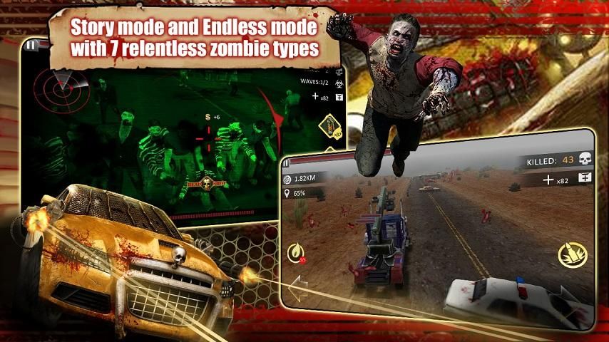 Here you can not only rush out crowds of zombies with car, but also sweep away zombies with machine gun and rockets.
