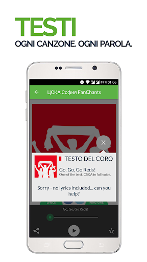 tutte da ascoltare, inviare agli amici e usare come suonerie per il tuo smartphone. Ricevi le notifiche per nuovi cori dei Tifosi di CSKA Sofia e utilizza la funzione di registrazione integrate per inviare nuovi