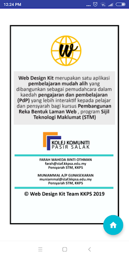 Web Design Kit merupakan satu aplikasi pembelajaran mudah alih yang dibangunkan sebagai pemudahcara dalam kaedah pengajaran dan pembelajaran (PdP) yang lebih interaktif kepada pelajar dan pensyarah bagi kursus Pembangunan Reka Bentuk Laman Web , program Sijil Teknologi Maklumat (STM)