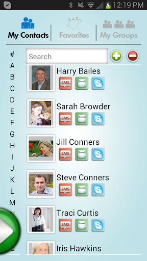 -Contacts: Easily communicate with family members and others interested in your health by phone, text, e-mail and video.