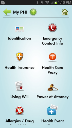 -Personal Health Information: A central repository of the many important pieces of health information for which you may need easy access or wish to share with others, including Emergency Contact Information, Health Insurance, Health Care Proxy, Living Will, Power of Attorney, Allergies/Drug Sensitivities, Health Event History, Lifestyle Profile and Physician/Health Care Contacts.